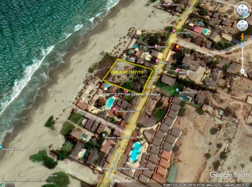 Venta de Terreno en Playa Vichayito | Fila 1 (Frente al mar) | Actualmente tiene un bungalow construido